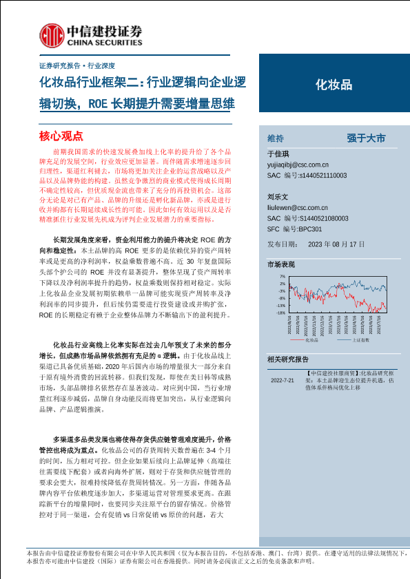 【中信建投证券】【20230817】化妆品行业框架二:行业逻辑向企业逻辑切换,ROE长期提升需要增量思维-29页