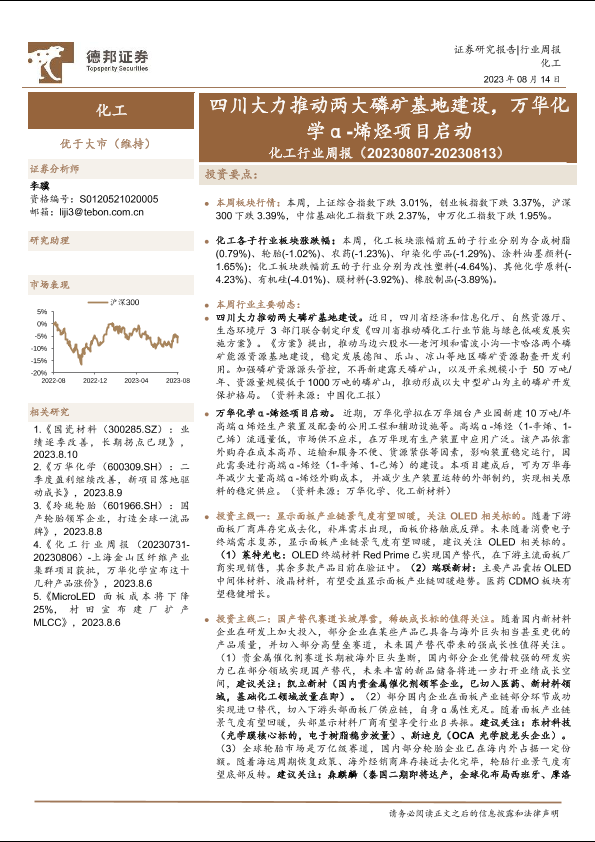 【德邦证券】【20230814】化工行业周报:四川大力推动两大磷矿基地建设,万华化学α -烯烃项目启动-25页