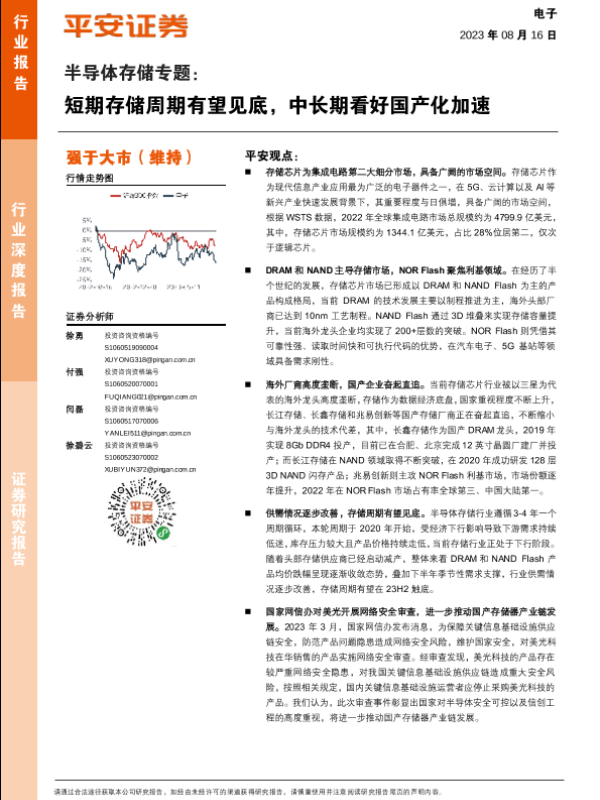 【平安证券】【20230816】半导体存储专题:短期存储周期有望见底,中长期看好国产化加速-37页