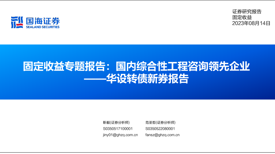 【国海证券】【20230814】固定收益专题报告:华设转债新券报告,国内综合性工程咨询领先企业-16页
