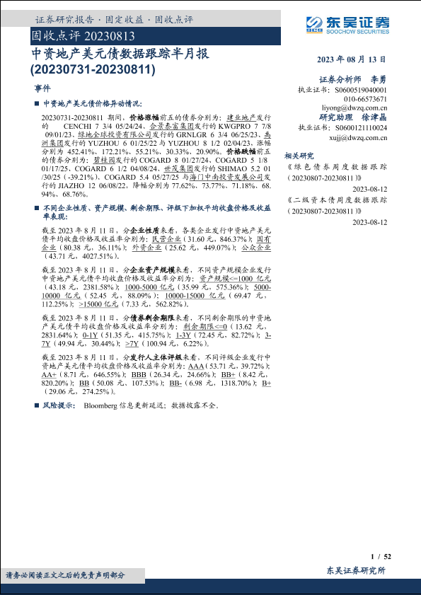 【东吴证券】【20230813】固收点评:中资地产美元债数据跟踪半月报-20230813-52页
