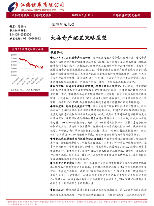 【江海证券】【20230811】大类资产配置策略展望-16页