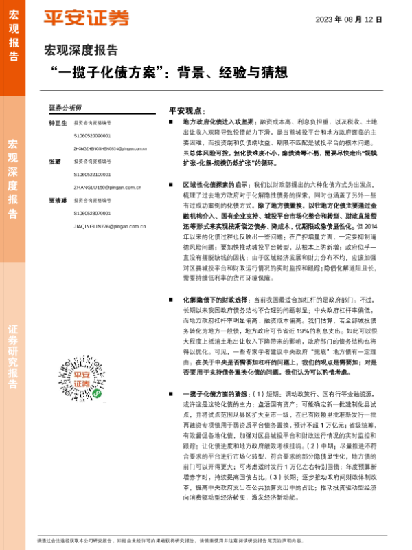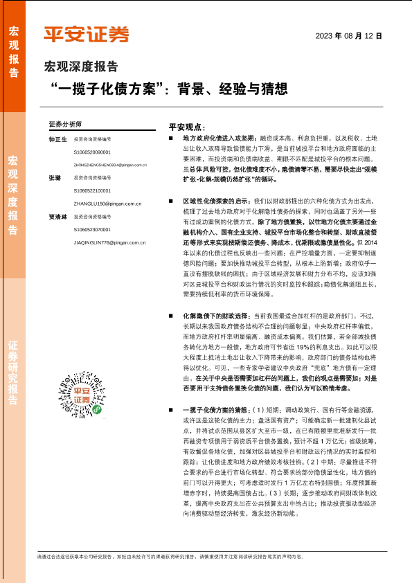 化债方案 地方政府债务 宏观深度报告 财政政策 金融监管