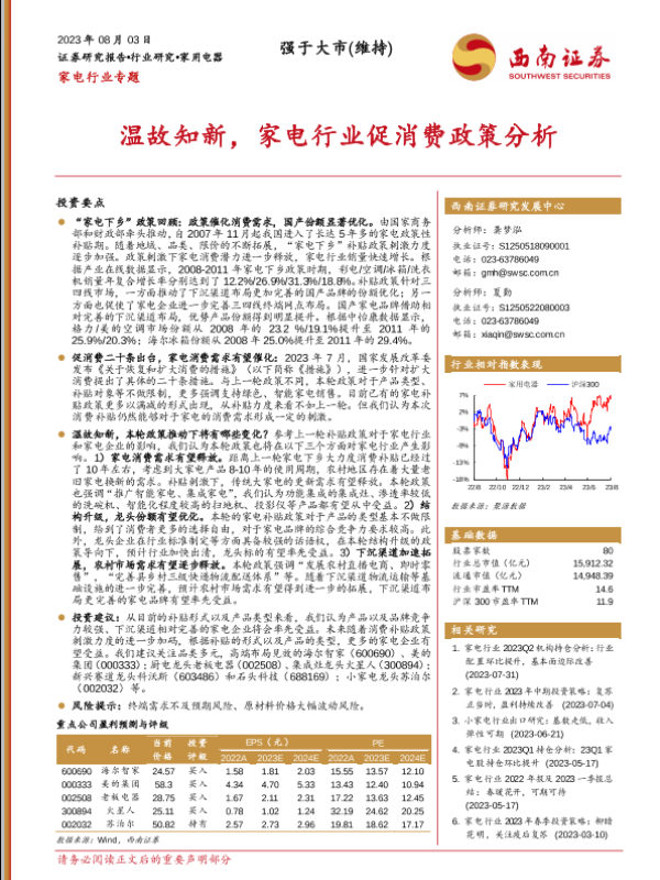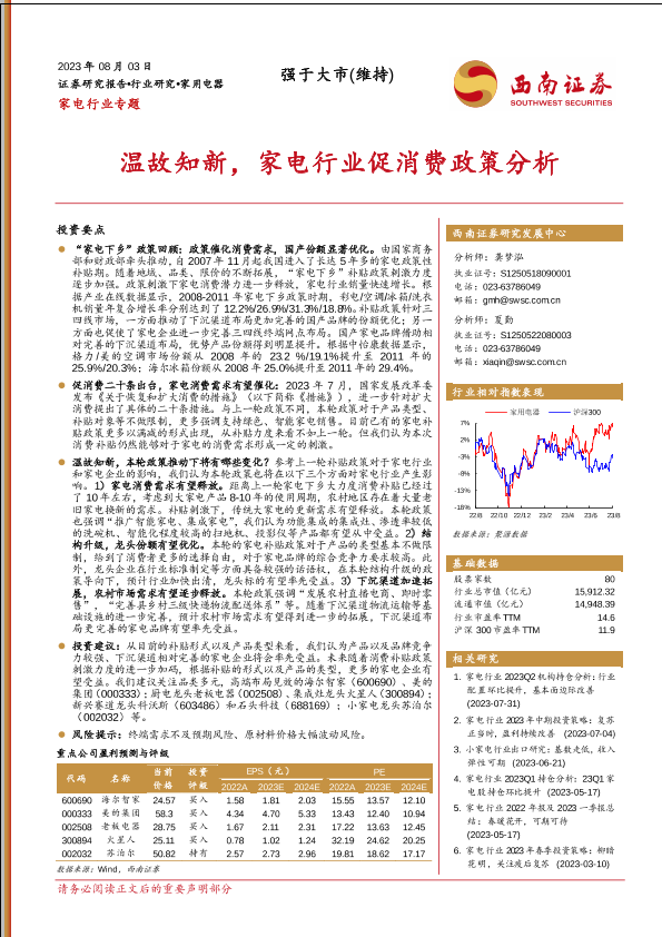【西南证券】【20230803】家电行业专题:温故知新,家电行业促消费政策分析-21页