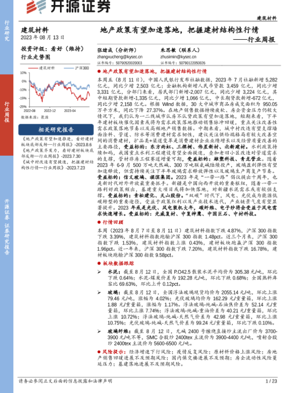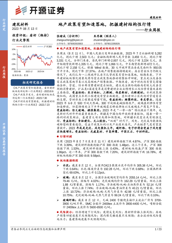 【开源证券】【20230813】建筑材料行业周报:地产政策有望加速落地,把握建材结构性行情-23页