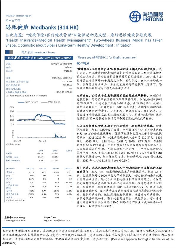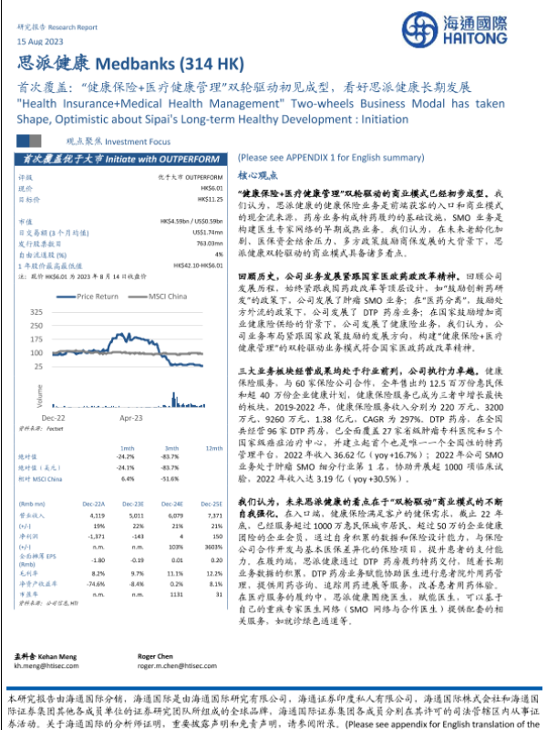 【海通证券】【20230818】思派健康00314.HK首次覆盖:“健康保险+医疗健康管理”双轮驱动初见成型,看好思派健康长期发展-35页