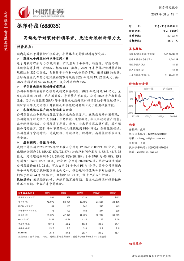 【国联证券】【20230815】德邦科技(688035)高端电子封装材料领军者,先进封装材料潜力大-31页