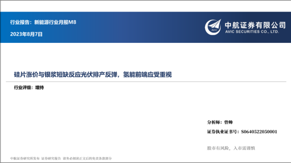 【中航证券】【20230807】新能源行业月报M8:硅片涨价与银浆短缺反应光伏排产反弹,氢能前端应受重视-17页