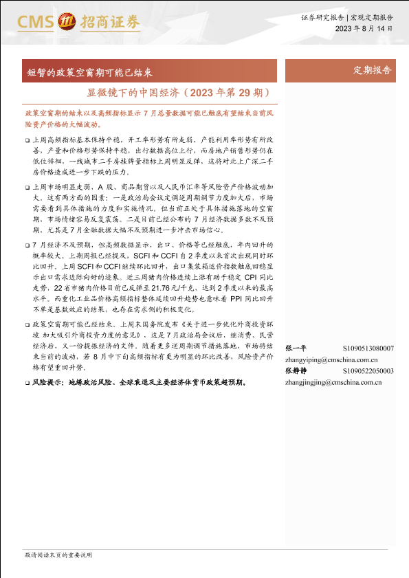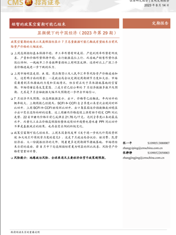 【海通证券】【20230814】显微镜下的中国经济(2023年第29期):短暂的政策空窗期可能已结束-37页