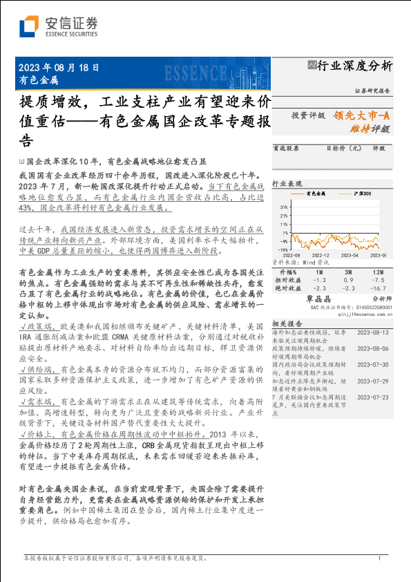 【安信证券】【20230818】有色金属行业国企改革专题报告:提质增效,工业支柱产业有望迎来价值重估-58页