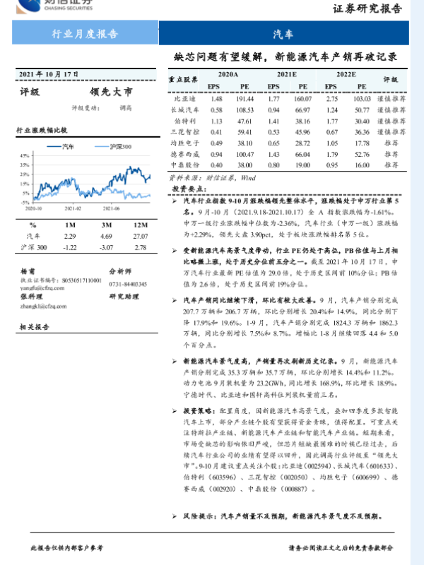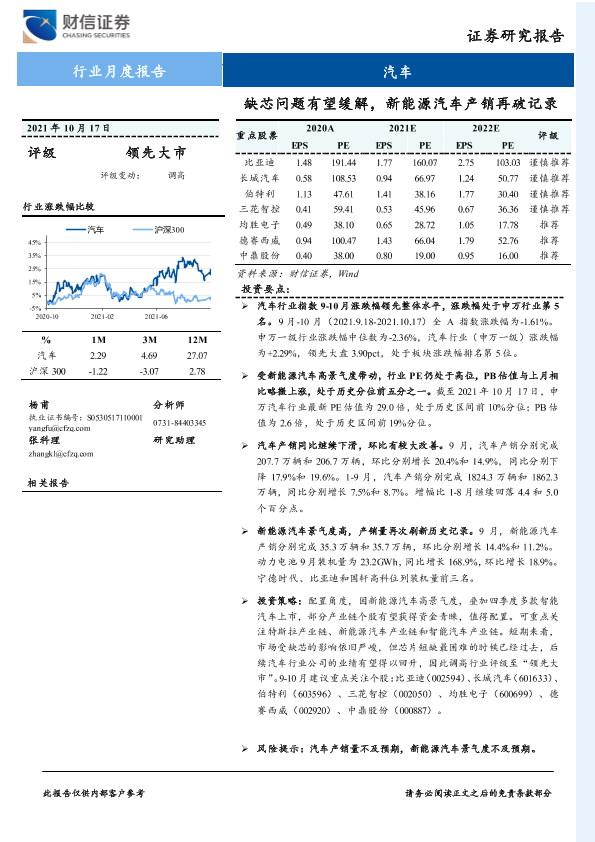 【财信证券】【20211017】汽车行业月度报告:缺芯问题有望缓解,新能源汽车产销再破记录-17页
