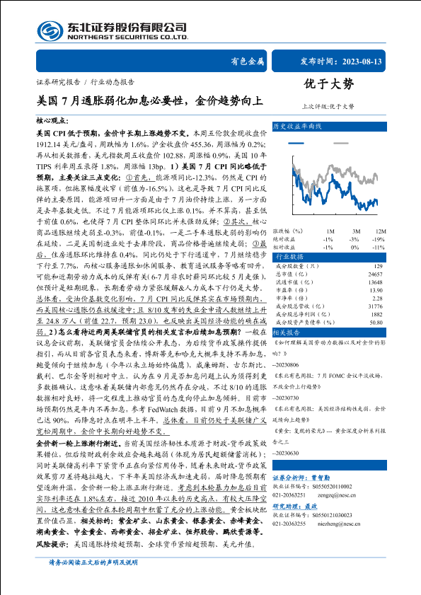【东北证券】【20230813】美国7月通胀弱化加息必要性,金价趋势向上-20页