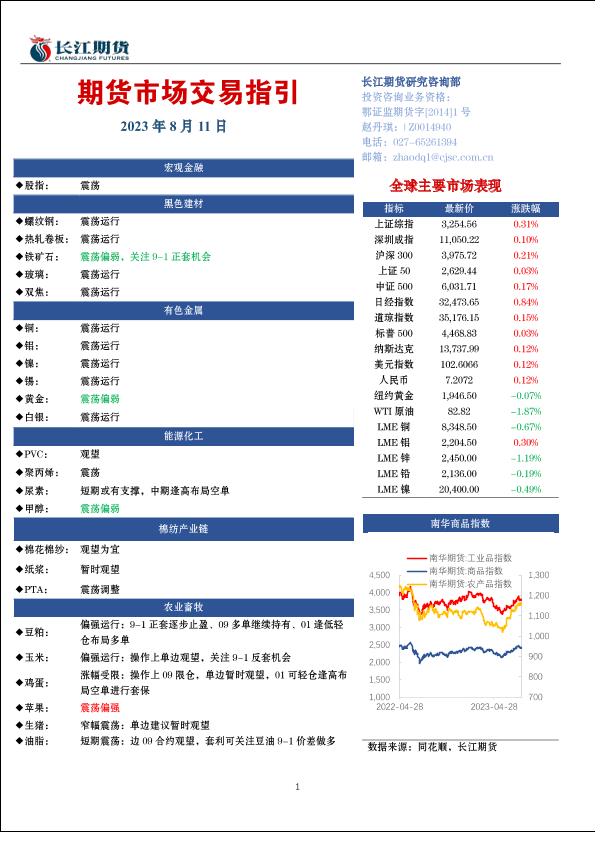 【长江期货】【20230811】期货市场交易指引-18页