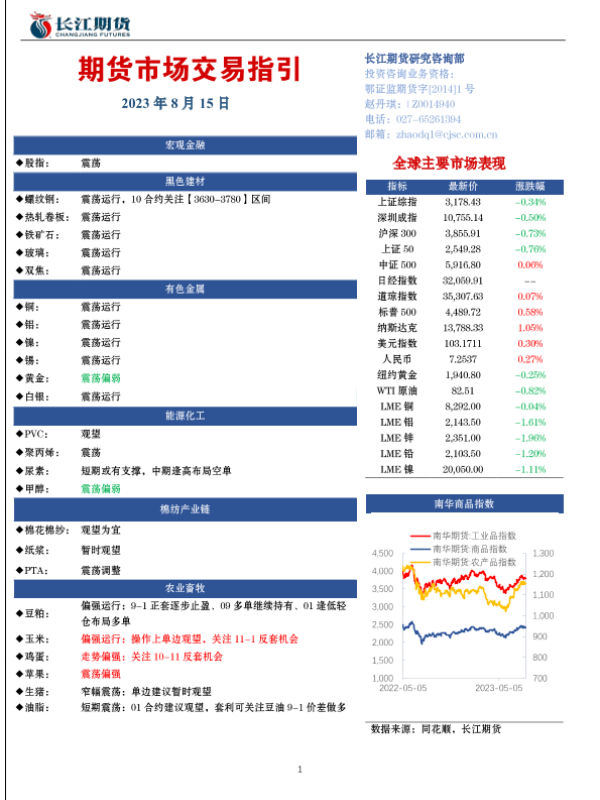 【长江期货】【20230815】期货市场交易指引-20230815-18页