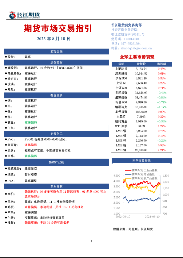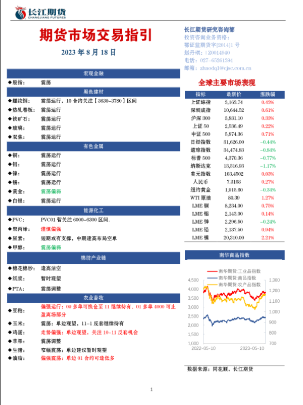 【长江期货】【20230818】期货市场交易指引-18页