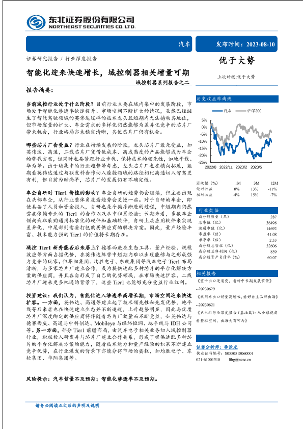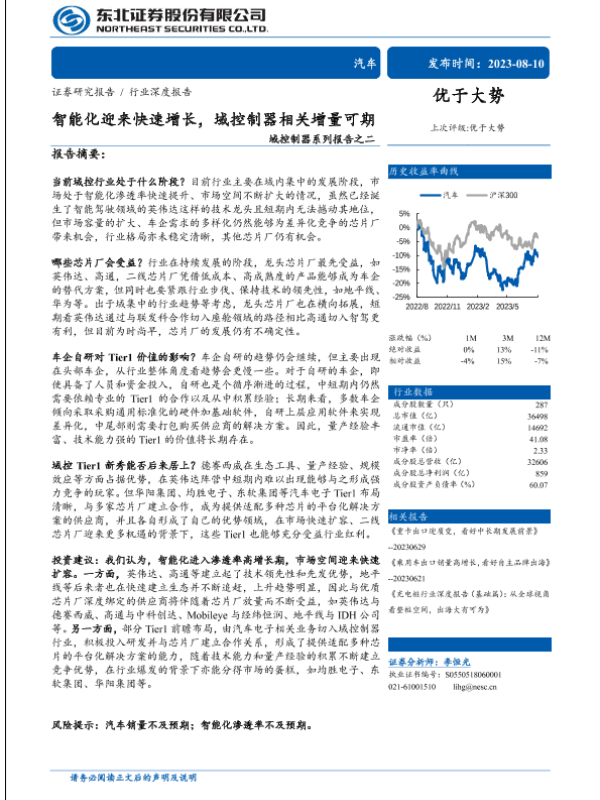 【东北证券】【20230810】汽车行业域控制器系列报告之二:智能化迎来快速增长,域控制器相关增量可期-44页