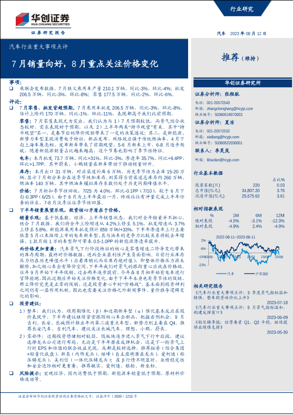 【华创证券】【20230812】汽车行业重大事项点评:7月销量向好,8月重点关注价格变化-15页