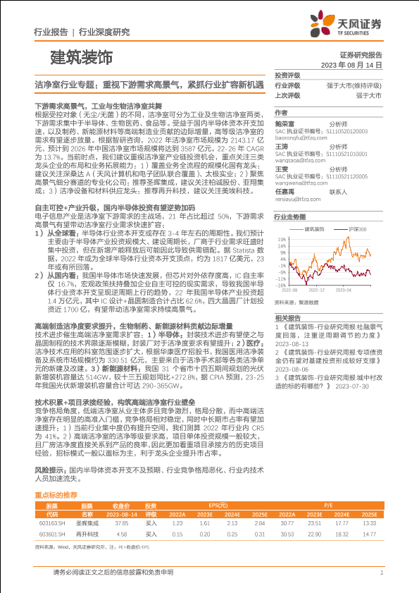 【天风证券】【20230814】洁净室行业专题:重视下游需求高景气,紧抓行业扩容新机遇-30页
