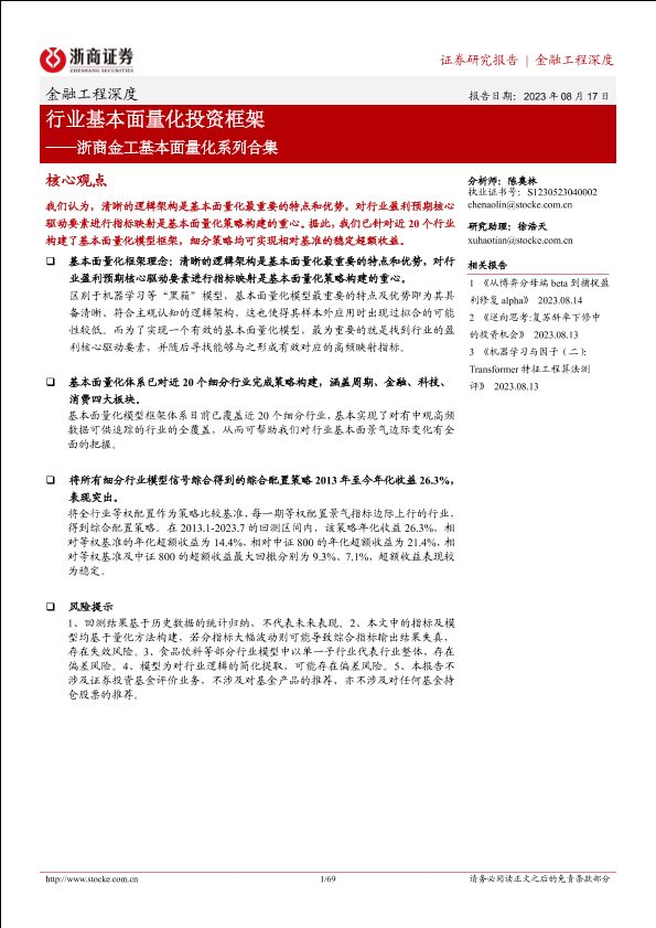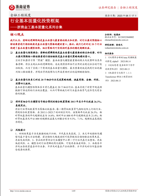 【浙商证券】【20230817】浙商金工基本面量化系列合集:行业基本面量化投资框架-69页
