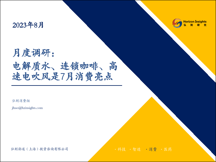 【弘则弥道(上海)投资咨询有限公司】【202308】消费行业月度调研:电解质水、连锁咖啡、高速电吹风是7月消费亮点-18页