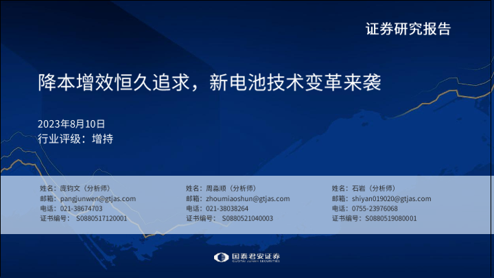 【国泰君安证券】【20230810】电力设备新能源行业:降本增效恒久追求,新电池技术变革来袭-35页