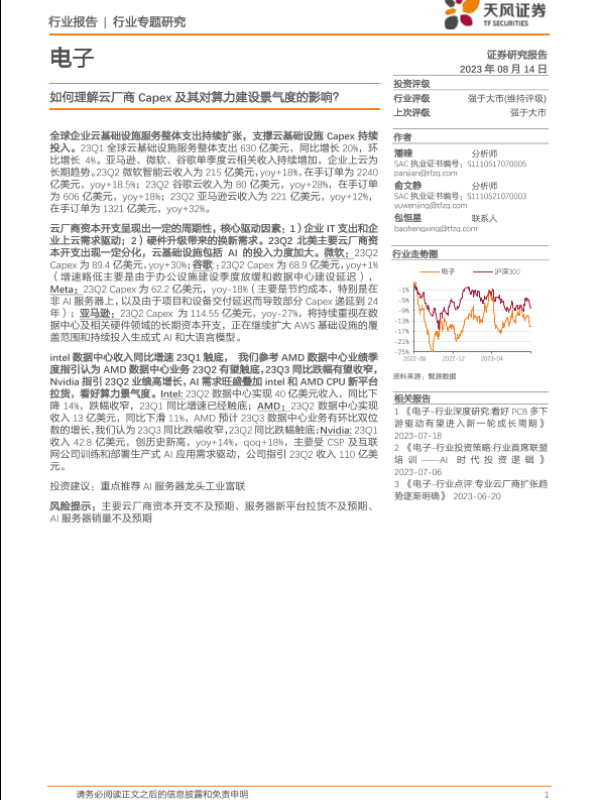 【天风证券】【20230814】电子行业:如何理解云厂商Capex及其对算力建设景气度的影响?-15页