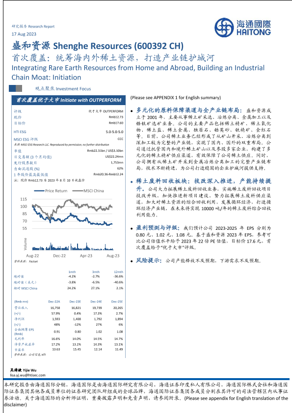 【海通国际】【20230817】盛和资源-600392.SH-首次覆盖:统筹海内外稀土资源,打造产业链护城河-18页