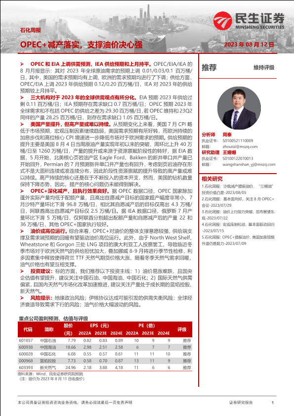 【民生证券】【20230812】石化周报:OPEC+减产落实,支撑油价决心强-32页
