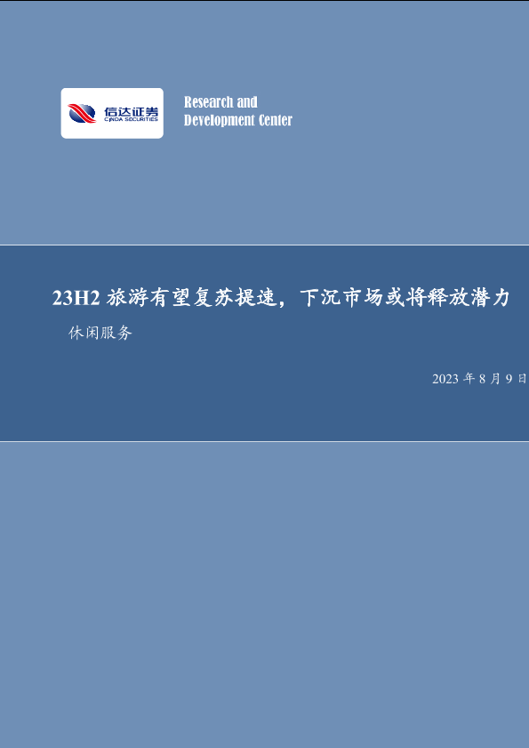 【信达证券】【20230809】社会服务双周专题:23H2旅游有望复苏提速,下沉市场或将释放潜力-19页