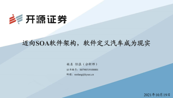 【开源证券】【20211019】汽车行业:迈向SOA软件架构,软件定义汽车成为现实-38页