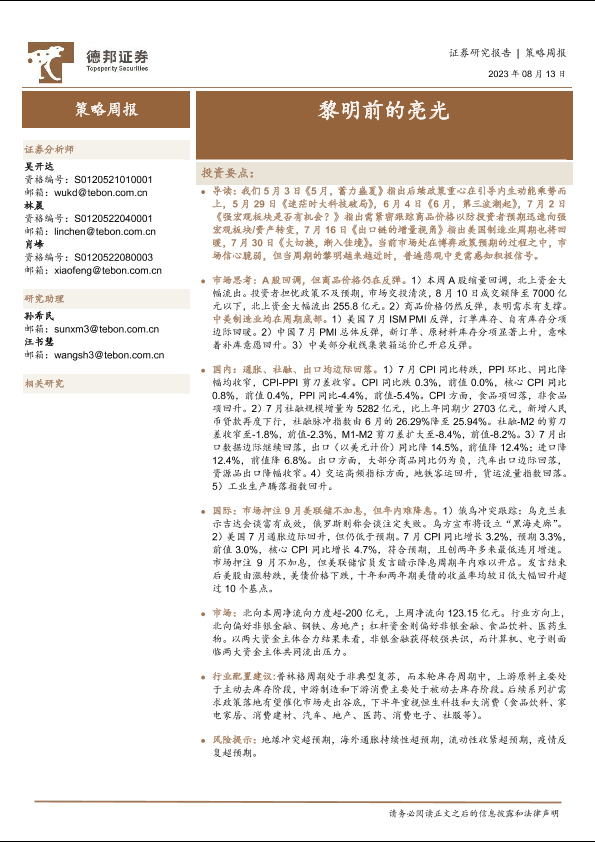 【德邦证券】【20230813】策略周报:黎明前的亮光-21页