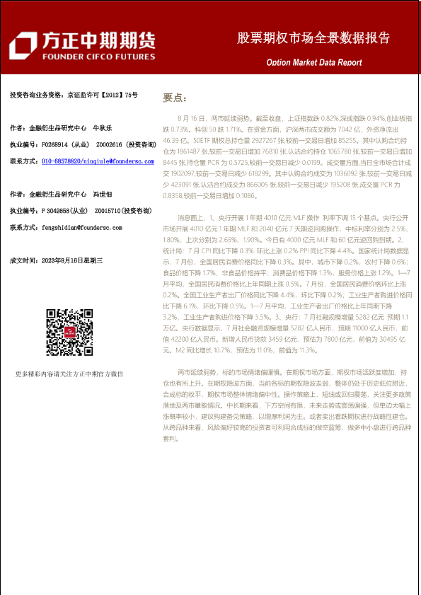 【方正中期期货】【20230816】股票期权市场全景数据报告-44页