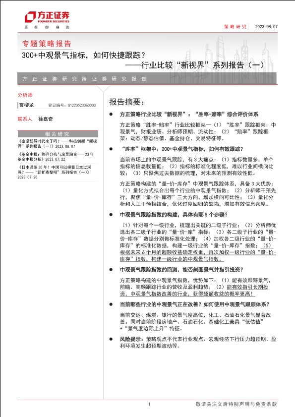 【方正证券】【20230807】行业比较“新视界”系列报告(一):300+中观景气指标,如何快捷跟踪?-17页