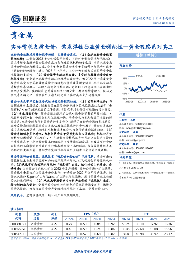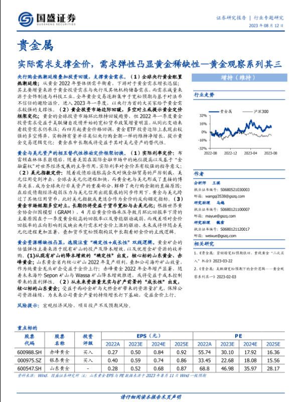 【国盛证券】【20230812】贵金属行业黄金观察系列其三:实际需求支撑金价,需求弹性凸显黄金稀缺性-27页
