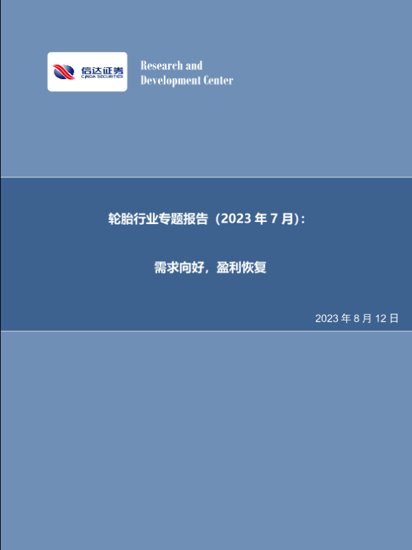 【信达证券】【20230812】轮胎行业专题报告(2023年7月):需求向好,盈利恢复-26页