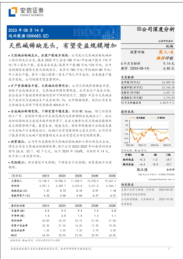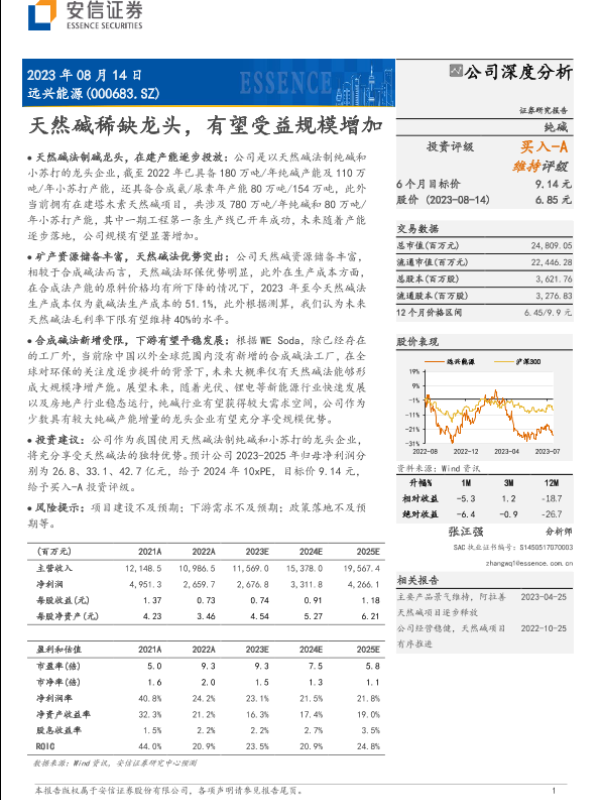 【安信证券】【20230814】远兴能源(000683)天然碱稀缺龙头,有望受益规模增加-29页