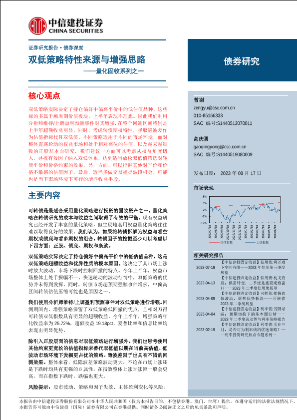 【中信建投证券】【20230817】量化固收系列之一:双低策略特性来源与增强思路-18页