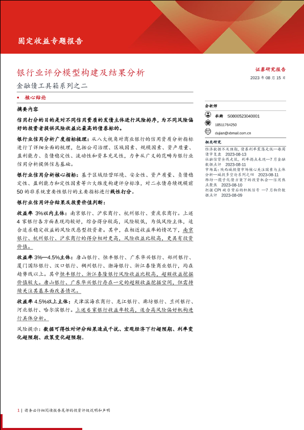 【西部证券】【20230815】金融债工具箱系列之二:银行业评分模型构建及结果分析-24页