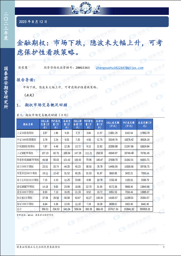 【国泰君安期货】【20230812】金融期权:市场下跌,隐波未大幅上升,可考虑保护性看跌策略-17页