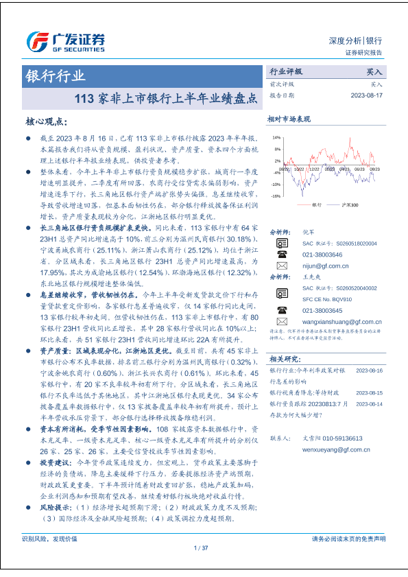 【广发证券】【20230817】银行行业:113家非上市银行上半年业绩盘点-37页