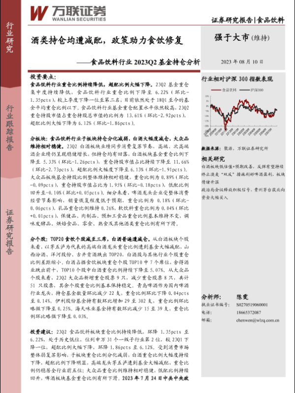 【万联证券】【20230810】食品饮料行业2023Q2基金持仓分析:酒类持仓均遭减配,政策助力食饮修复-16页