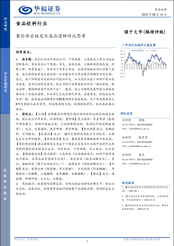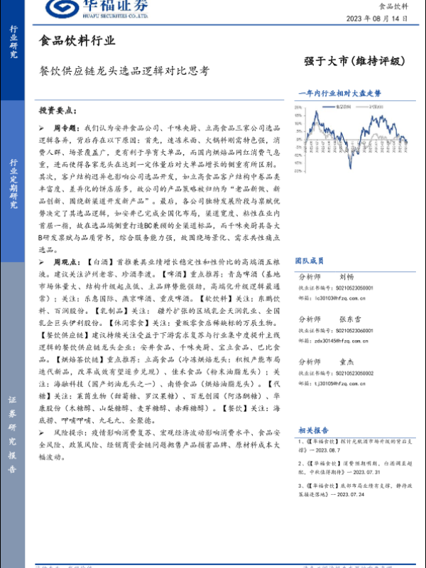 【华福证券】【20230814】食品饮料行业:餐饮供应链龙头选品逻辑对比思考-17页