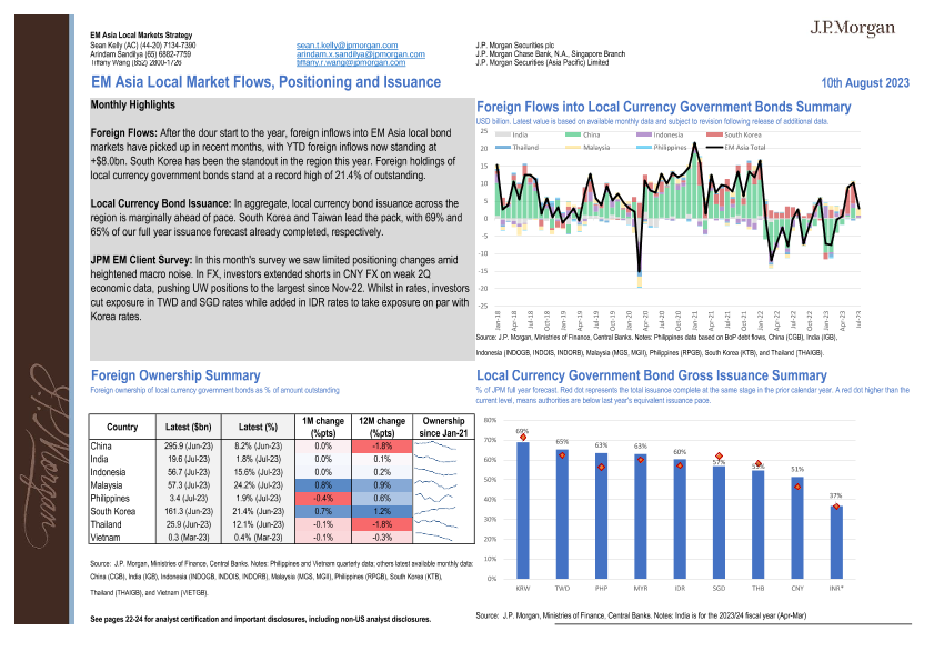 【J.P. Morgan】【20230810】EM Asia Local Market Flows, Positioning and Issuance Introduction-24页