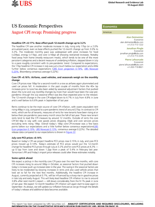 【UBS Securities LLC】【20230810】US Economic Perspectives August CPI recap Promising progress-13页