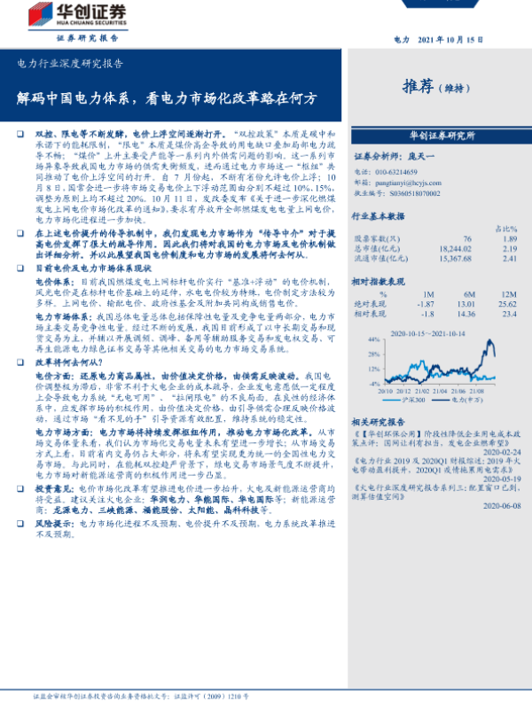 【华创证券】【20211015】电力行业深度研究报告:解码中国电力体系,看电力市场化改革路在何方-16页