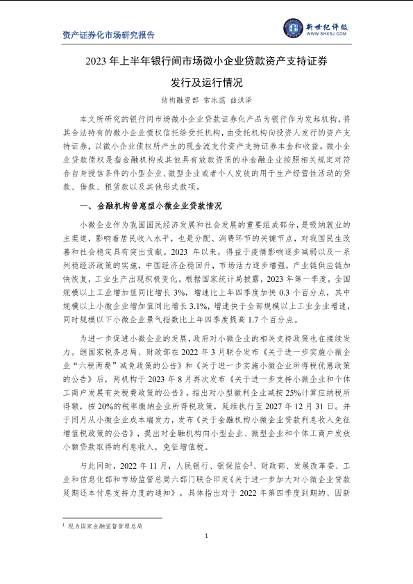 【新世纪评级】【20230630】2023年上半年银行间市场微小企业贷款资产支持证券发行及运行情况-14页