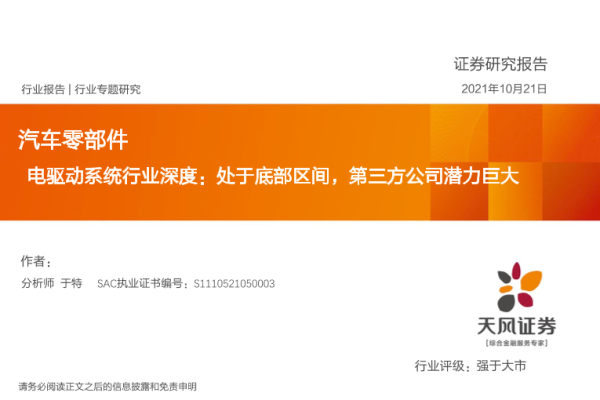 【天风证券】【20211021】电驱动系统行业深度:处于底部区间,第三方公司潜力巨大-32页