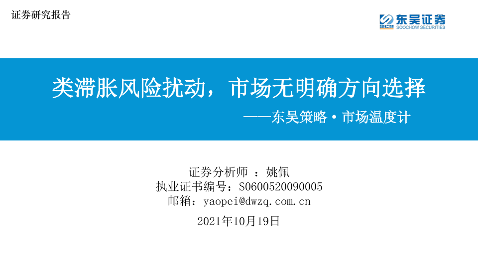 【东吴证券】【20211019】策略·市场温度计:类滞胀风险扰动,市场无明确方向选择-26页