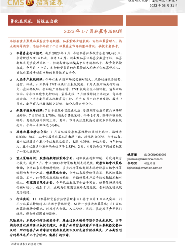【海通证券】【20230831】2023年1-7月私募市场回顾:量化显风采,新规正启航-35页