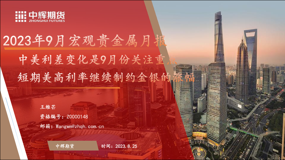 【中辉期货】【20230825】2023年9月宏观贵金属月报:中美利差变化是9月份关注重点,短期美高利率继续制约金银的涨幅-47页
